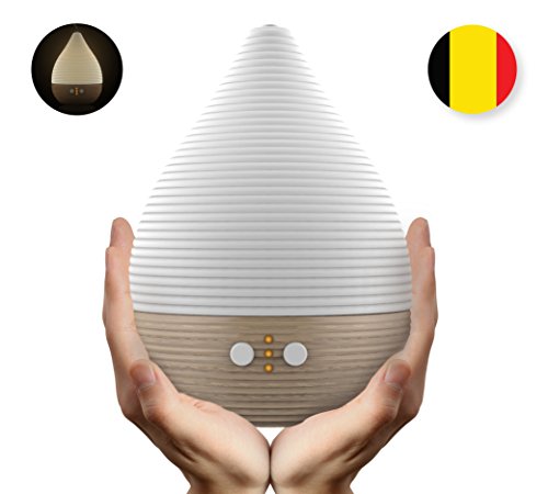 Teo Aroma Best Essential Oil Diffuser, Scent and Fragrance Aromatherapy Humidifier - Now with Handmade Ceramic, FSC Certified Beech Wood, Belgian modern Design, Timer, LED Light, Long Cord, Silent Fan