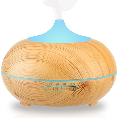 URPOWER Aromatherapy Essential Oil Diffuser 300ml Wood Grain Ultrasonic Cool Mist Whisper-Quiet Humidifier with Color LED Lights Changing & 4 Timer Settings, Waterless Auto Shut-Off for Spa Baby Home